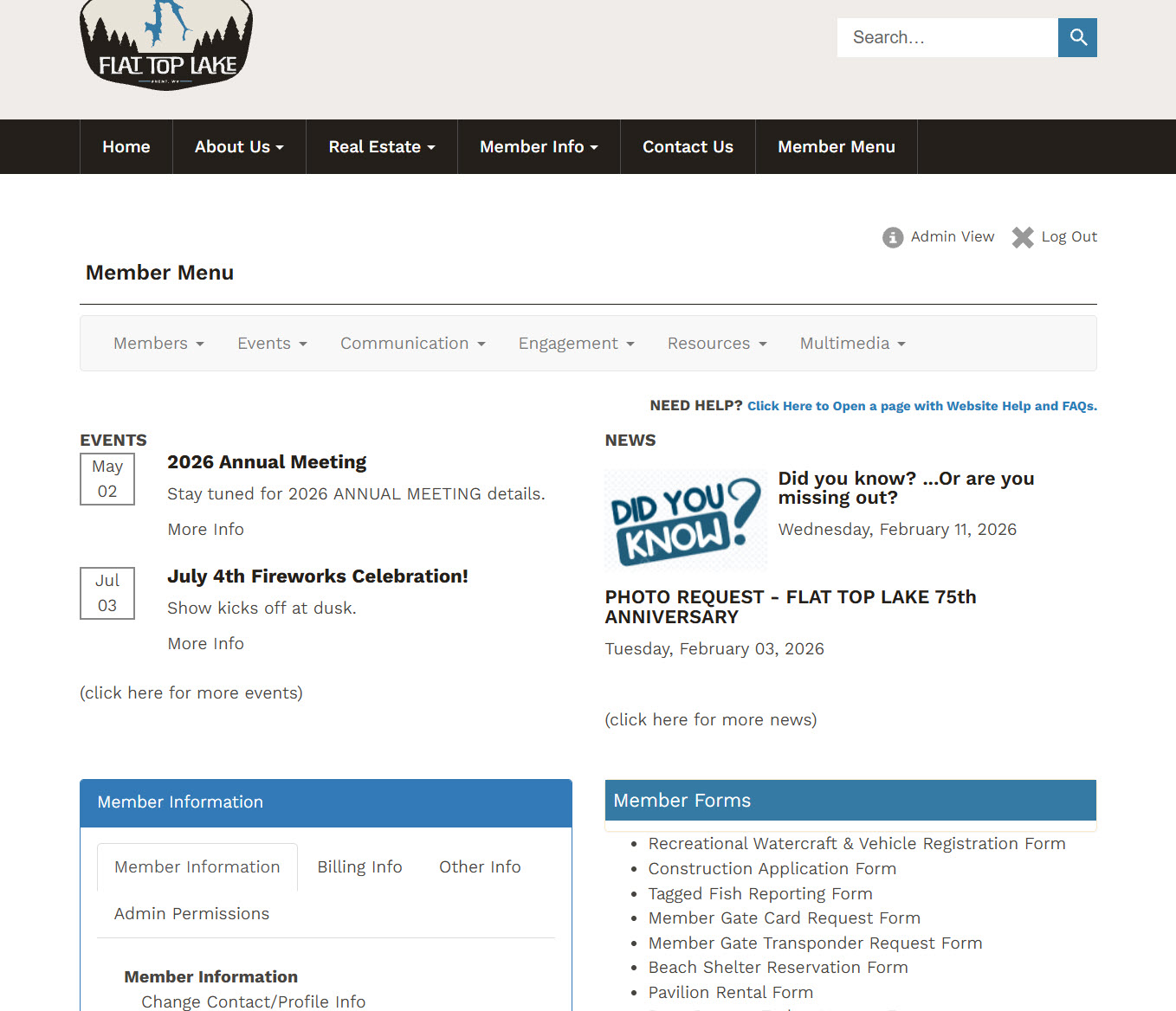 If you need assistance with login credentials or navigating the site, please contact: Patti Luers at 614.506.0701 or send an email to communications@flattoplakewv.org